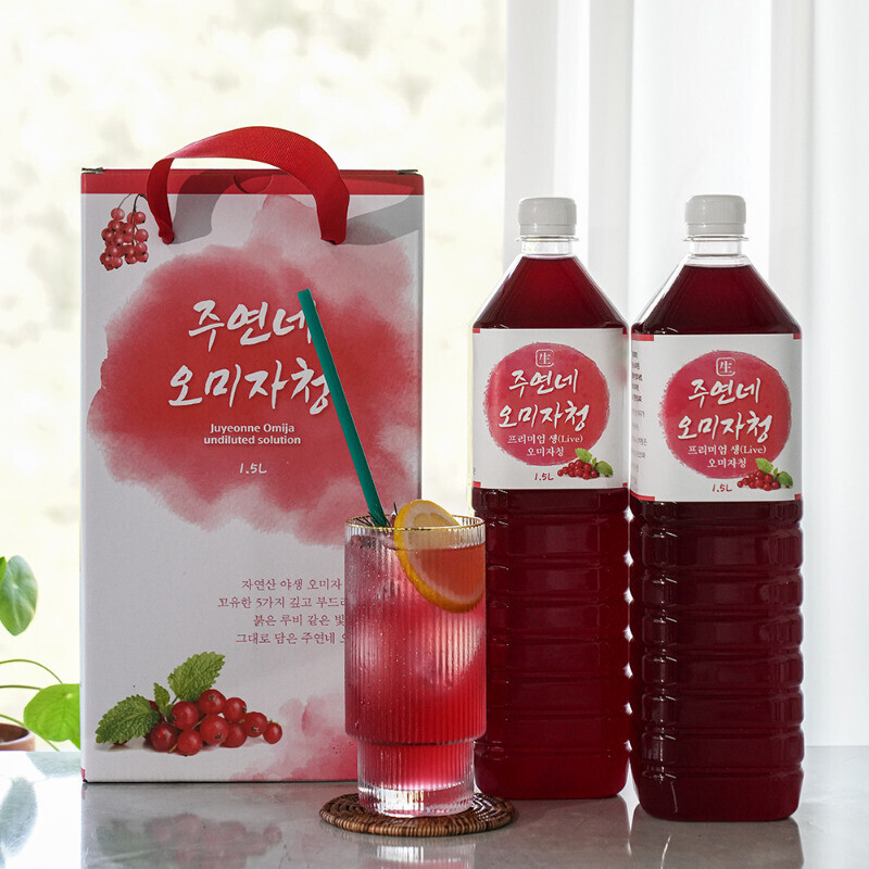 프리미엄 수제 생오미자청 1.5 L(2병) 원액(주연네오미자농원)