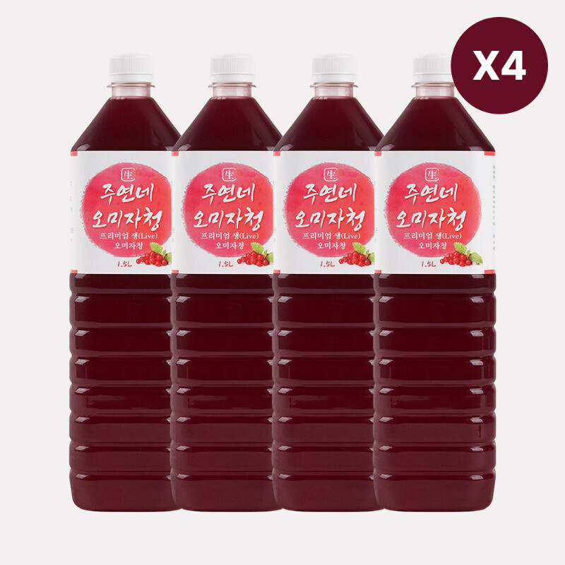 프리미엄 수제 생오미자청 1.5 L(4병) 원액(주연네오미자농원)